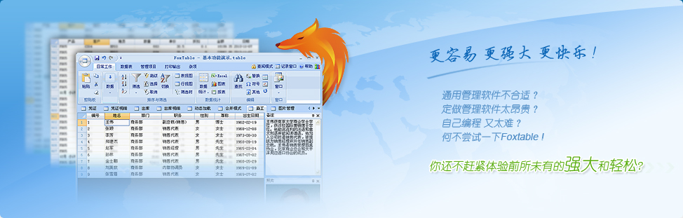 Foxtable不僅是一個(gè)優(yōu)秀的應(yīng)用軟件,同時(shí)又是一個(gè)高效率的開(kāi)發(fā)工具,幾乎人人都能掌握。普通人也能開(kāi)發(fā)出讓資深程序員目瞪口呆的軟件,不再是天方夜譚。